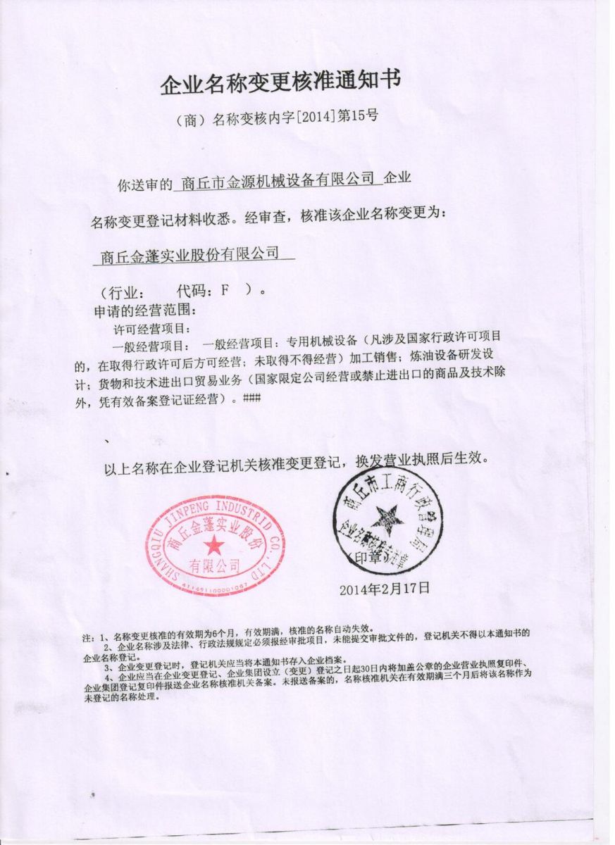 10 Mar 商丘市金源机械设备有限公司更名“星空web版登录入口”公告 商丘金源市机械设备有限公司更名“星空web版登录入口”公告由于股改,原商丘市金源机械设备有限公司经工商局批准,正式更名商丘金源市机械设备有限公司.